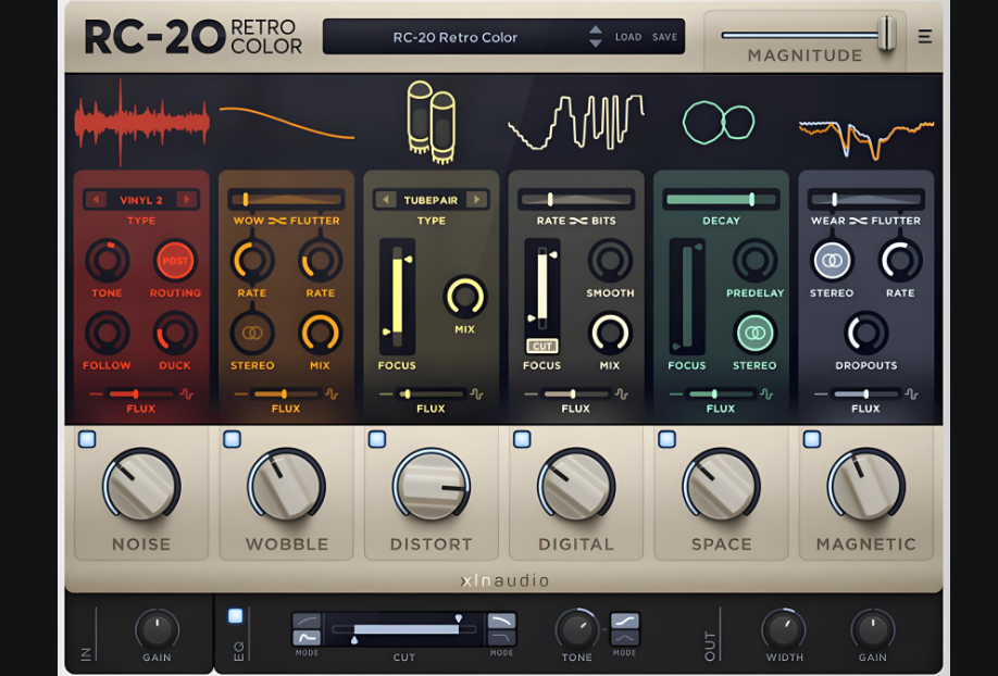 RC-20 Retro Color是一款由XLN Audio开发的复古风格音频效果插件,主要用于为音乐作品增添老式录音设备的温暖质感。以下是其核心功能简介: