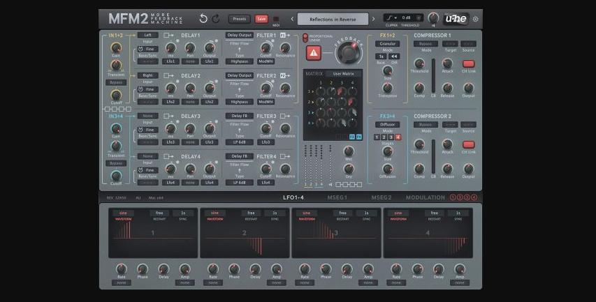 Uhe MFM2 v2.5.0 是一款数字延迟混响插件,支持Windows、MacOS和Linux系统,由R2R团队开发。该版本在功能上进行了重大升级,新增了颗粒化处理、扩散器等特性,并优化了用户界面和调制矩阵功能。